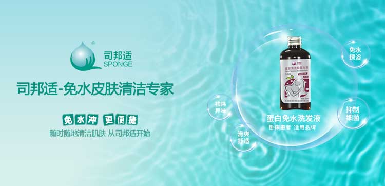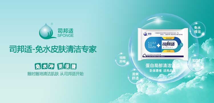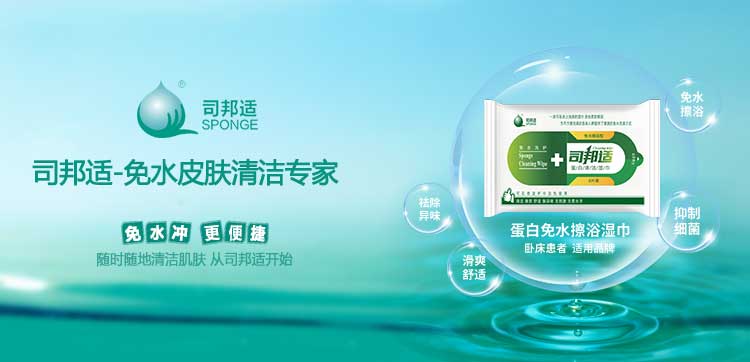 ? ? ? ?本公司研發的司邦適蛋白表面活性因子,不僅對人體皮膚及粘膜沒有刺激,同時具有對皮膚很強的清潔能力;可以祛除人體皮膚上的異味,并且具有較強的抑菌功效。使用后無需用水沖洗皮膚仍感到舒適爽滑;基于上述原因我們研發的司邦適免水清潔系列產品。主要適用于各種主觀或者客觀上不方便全身或局部皮膚清潔的人群。